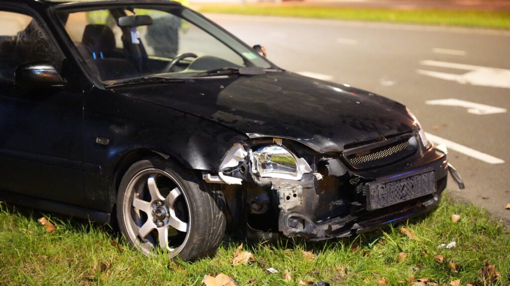 Een automobilist verloor door nog onbekende oorzaak de macht over het stuur en raakte in de slip. De auto raakte daarbij met de voorkant een ANWB verkeerspaal en kwam vervolgens tot stilstand in de berm.