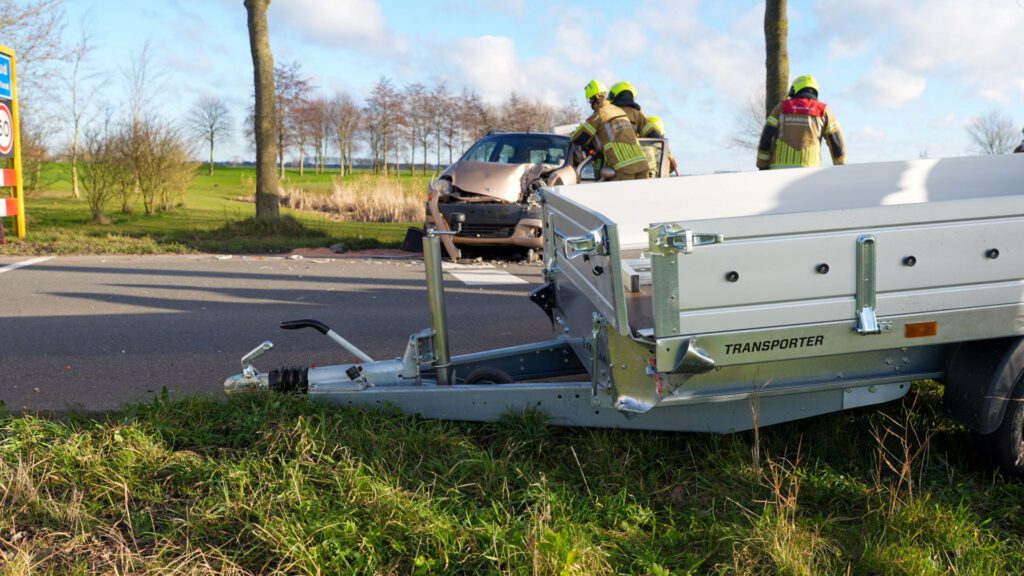 Automobiliste botst frontaal op los geschoten aanhanger