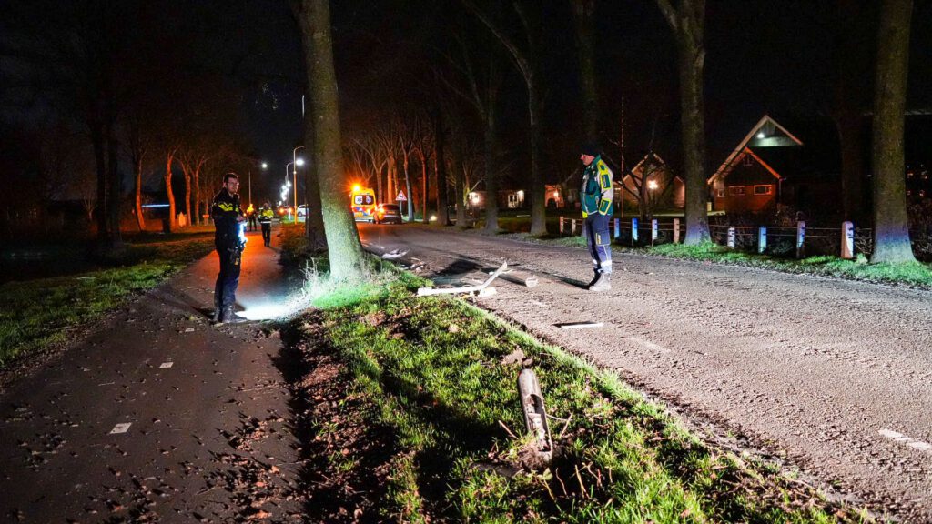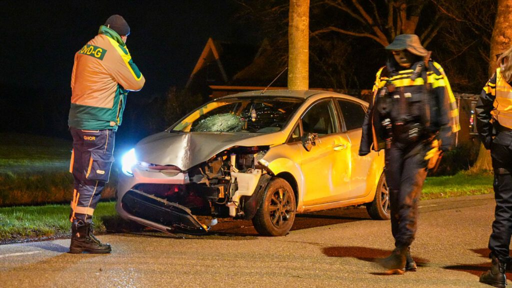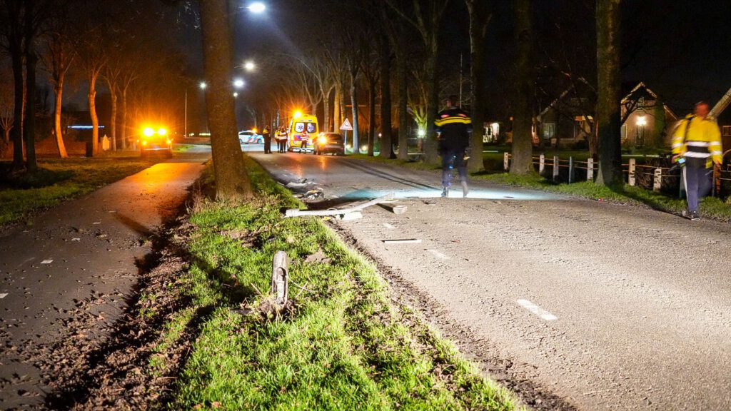 Gewonde na botsing tegen lantaarnpaal in Zwaagdijk-Oost